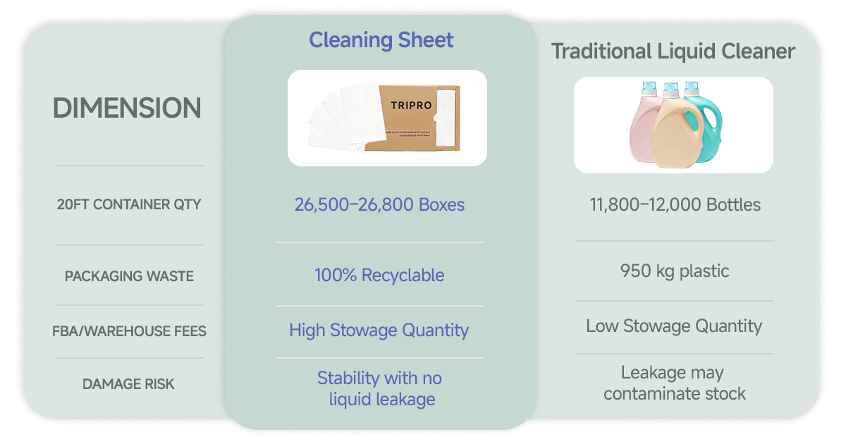 - Space Optimization: Compared to traditional liquid jugs, cleaning sheets can multiply inventory turnover rates for the same amount of shelf or warehouse space.
